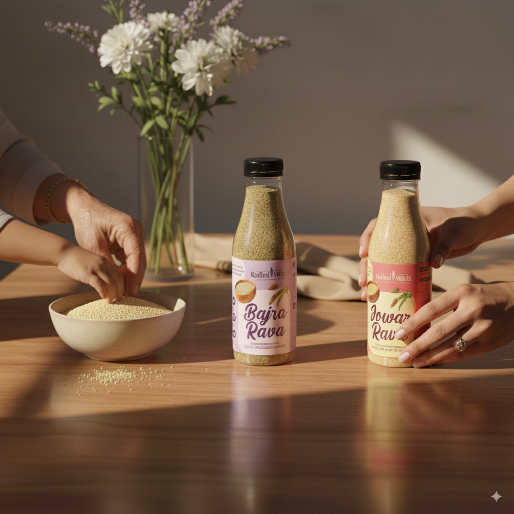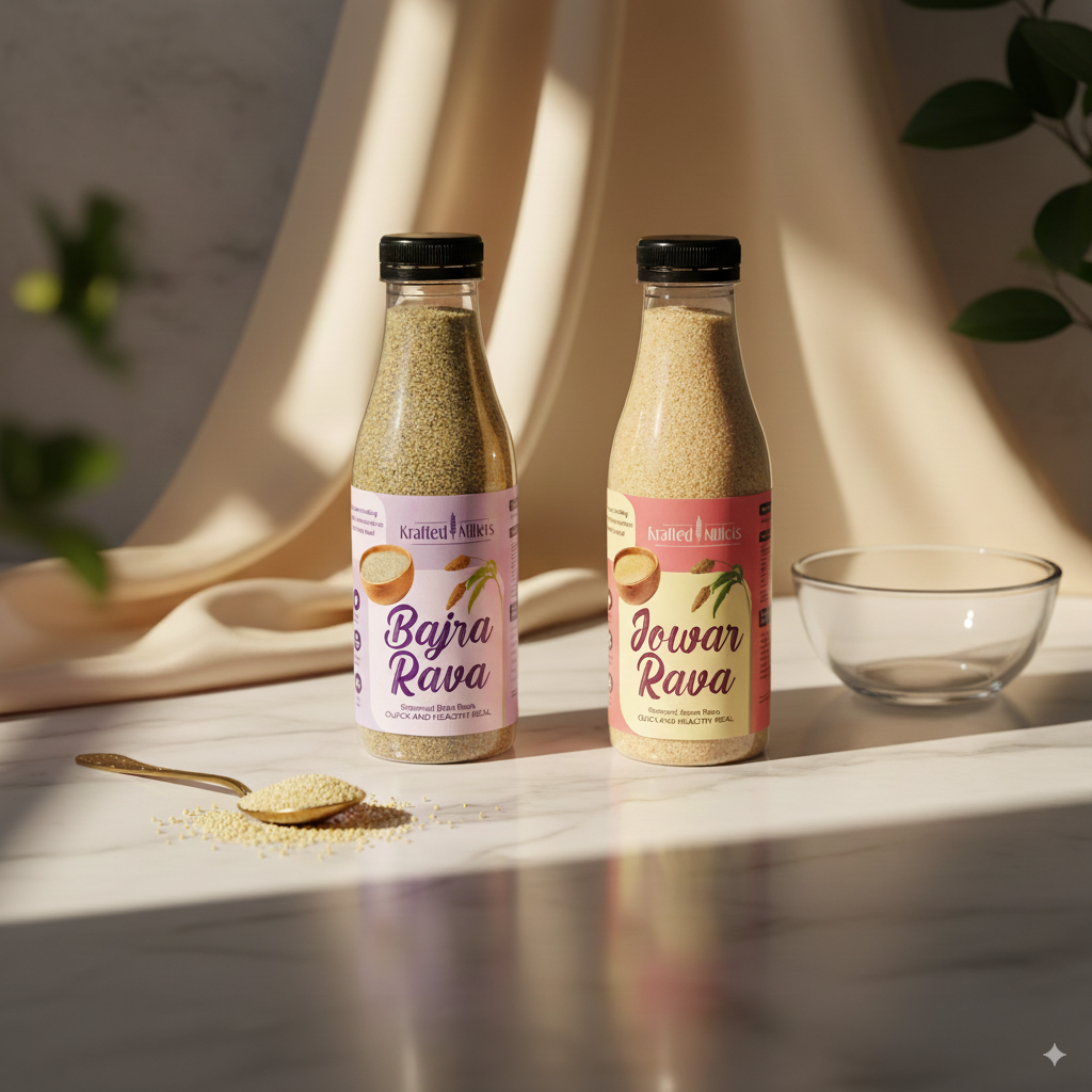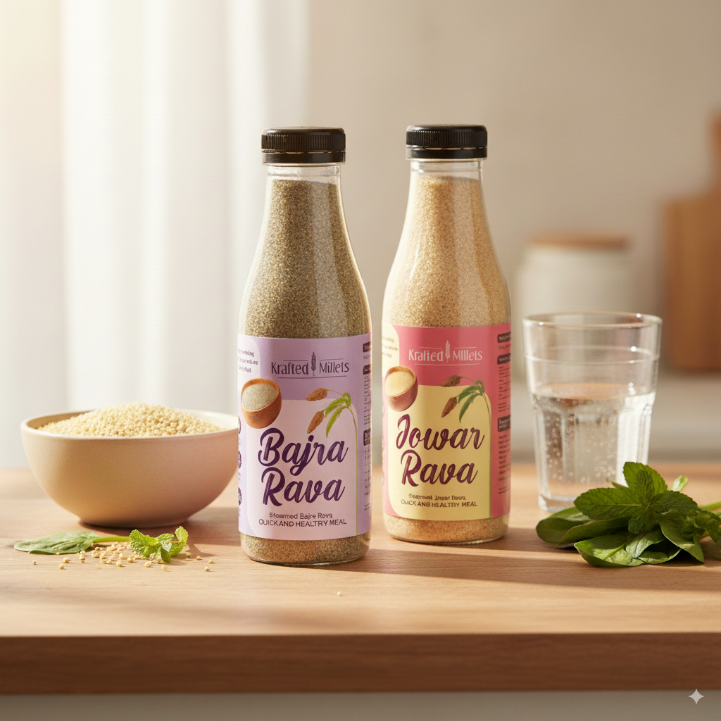 Order Krafted Millets Steamed Jowar Rava, Steamed Bajra Rava and supercharge your breakfast!