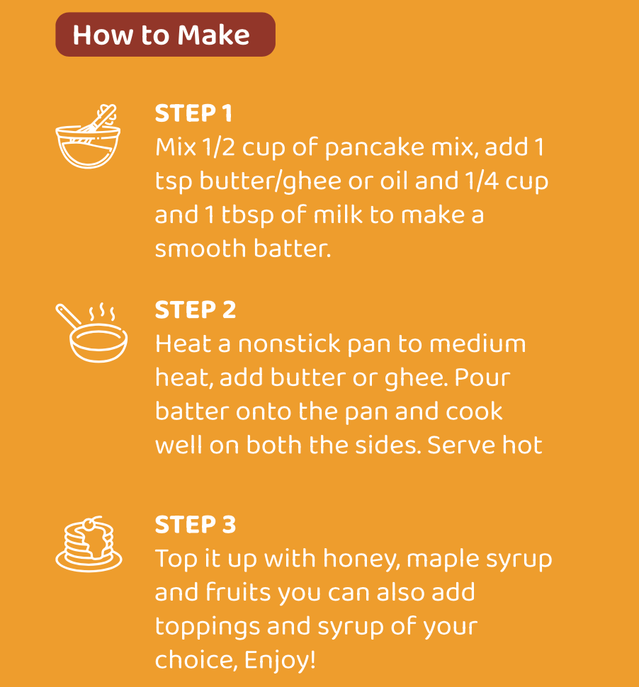 Krafted Millets Pancake Mix uses only pure ragi, a superfood packed with 10x the Calcium and 3x the Fiber of regular mixes. Enjoy fluffy, delicious pancakes that keep you feeling full and energized.