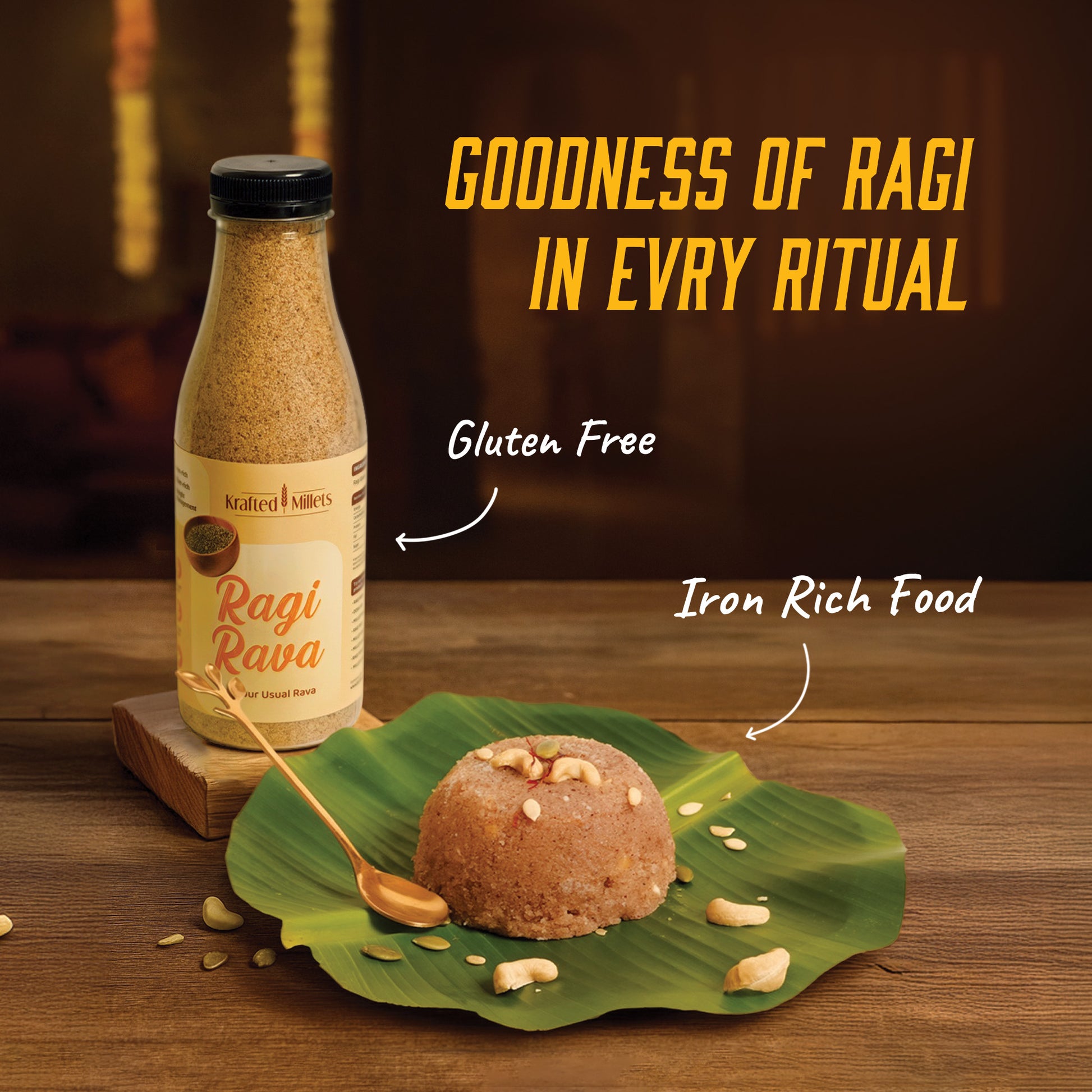 - Naturally Iron-Rich: Ditch the supplements! Ragi Rava is a natural source of iron, essential for energy production and overall well-being.