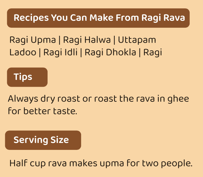 - 10x Calcium: Build strong bones with Ragi Rava, a calcium powerhouse compared to semolina.